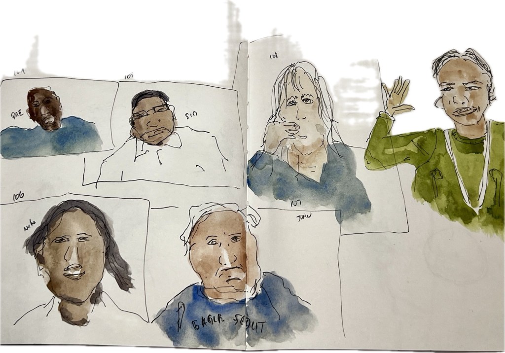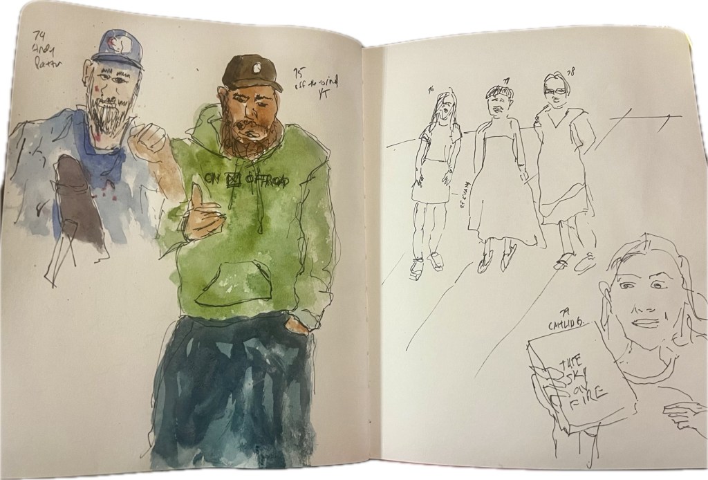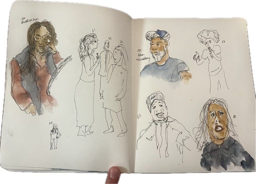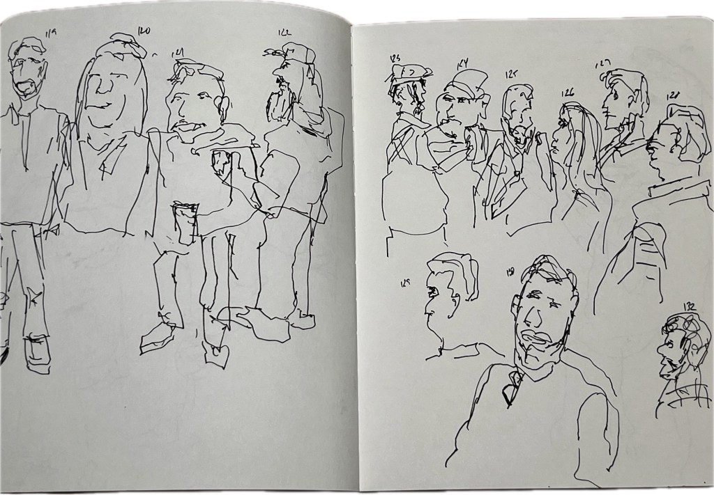I sketched a total of 134 figures. Things slowed down as I had an increase in migraine attack. Did a batch of sketches tonight at a concert before the band came on, so no paint but lots of characters to look at. Very fun experience this year doing this challenge and I will continue.